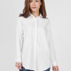 - Áo sơ mi nữ dài tay, cổ đức, thêu hình ở ve cổ áo, phom dáng suông.